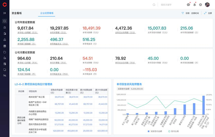 通過紅圈系統實時了解公司的整體資金狀況(墊資情況、現金流、動態成本和利潤等)是否安全,經營風險是否可控;通過系統讓公司對上對下付款更加規范和合理,管理人員做好過程審核,也能幫助領導做好決策用錢,更好的規避風險,提升產值和收益越大。