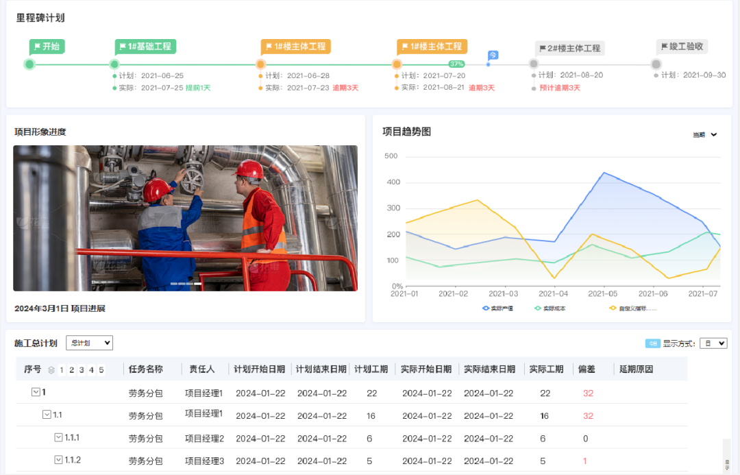 以往項目進度都是口頭開會匯報,但是項目是否按照計劃進行,某個節(jié)點滯后不能及時發(fā)現(xiàn),出現(xiàn)偏差總是后知后覺,造成資金損失。