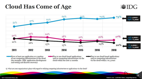 IDG?2018年企業云研究報告,73%的企業“處于云中”