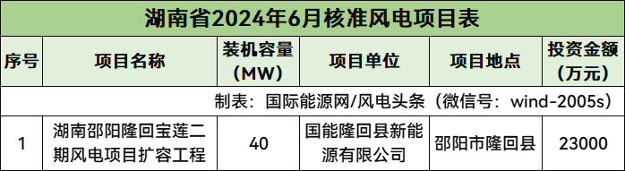 湖南核準1個風電項目,總規模40MW,總投資23000萬元,為陸上風電項目。