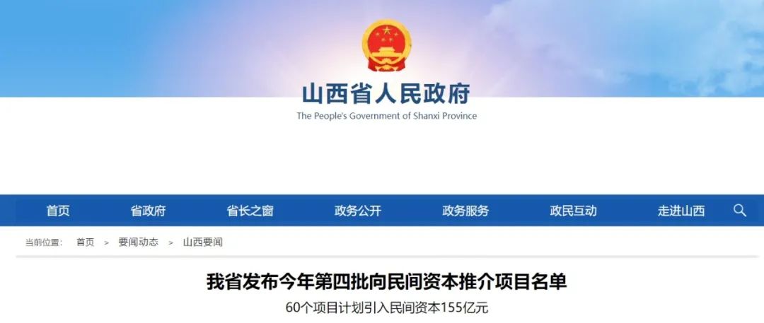 行業政策?|?總投資308億元!山西公布新一批向民間資本推介項目!